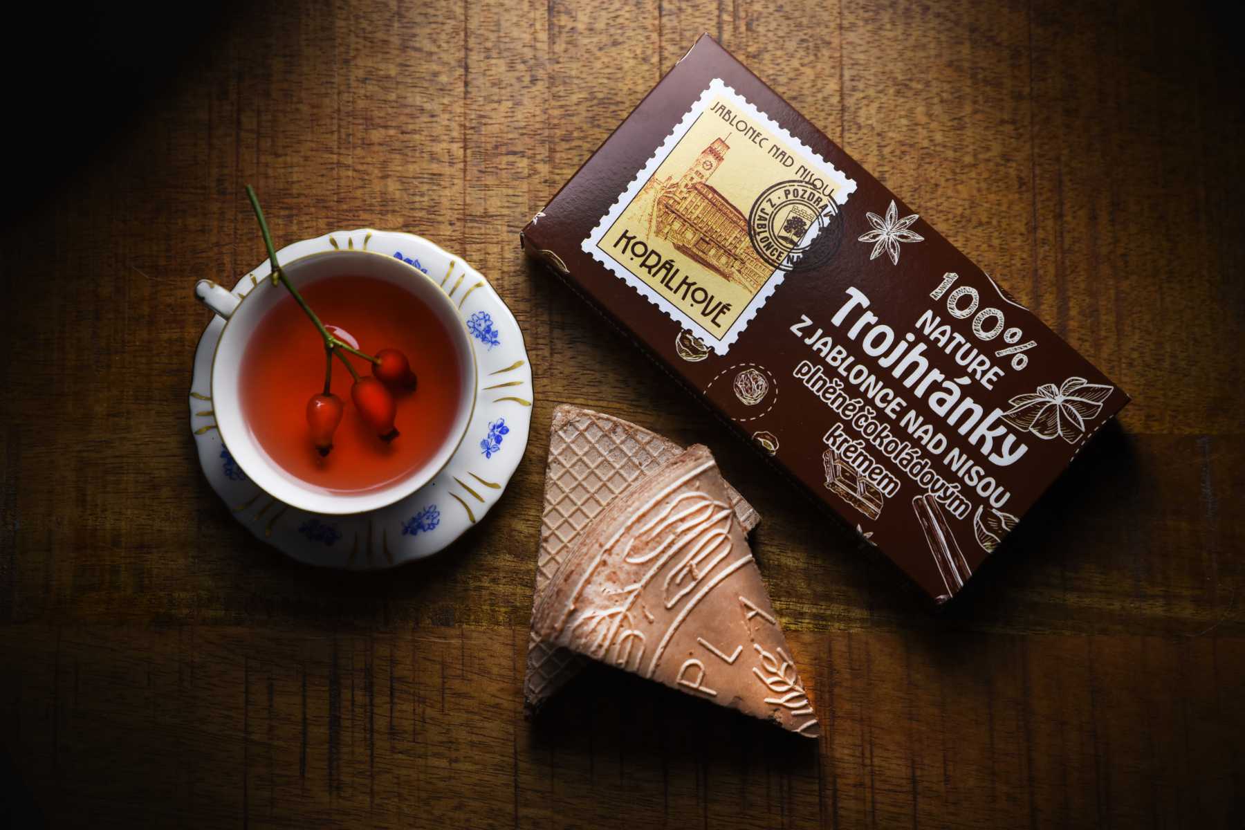 Ke kávě nebo k čaji jsou sušenky ve tvaru trojhránku oblíbenou volbou. Z Jablonce nad Nisou si můžete přivézt jak jinak než Korálkové! Doplňují tak Korálkovou edici, kde v podobném designu zakoupíte i čokoládu, medovinu, oříšky, víno či jablkovici.