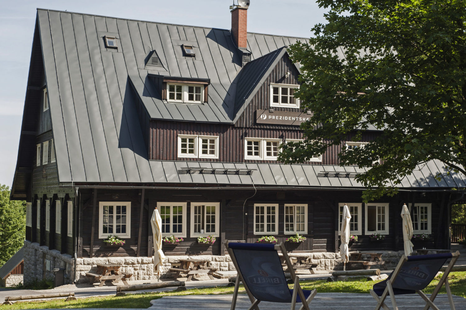 Prezidentská chata Das ursprüngliche, gezimmerte Gebäude aus dem Jahre 1928 in 850 m Meereshöhe bietet stilvolle Unterkunft auf den Kämmen des Isergebirges. Die berühmte Holzhütte wurde einer gründlichen Rekonstruktion unterzogen, die ihr ihr ursprüngliches Aussehen aus der ersten Hälfte des vergangenen Jahrhunderts zurückverlieh. Sämtliche Materialien, die namentlich bei Umbauten in den 70er Jahren verwendet wurden, beispielsweise Laminate oder Pressholz, wurden wieder beseitigt.
