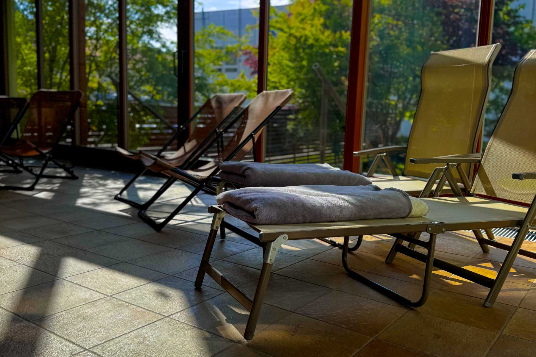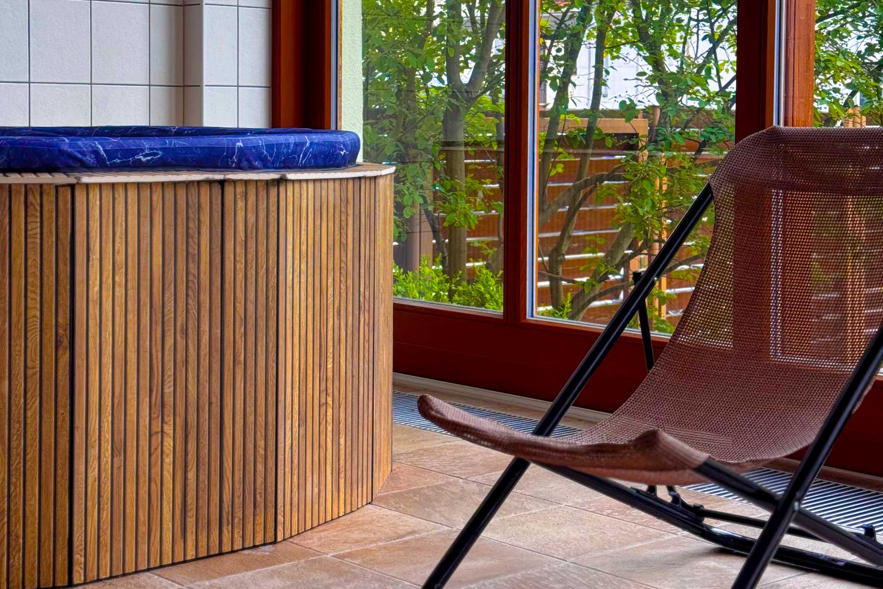 Der Wellnessbereich bietet eine Kombination aus hochwertigen Einrichtungen und einer angenehmen Atmosphäre für Einzelpersonen und Gruppen. Klienten können neue Kraft schöpfen, entschleunigen und sich um Körper und Seele kümmern. Hier finden Sie:
