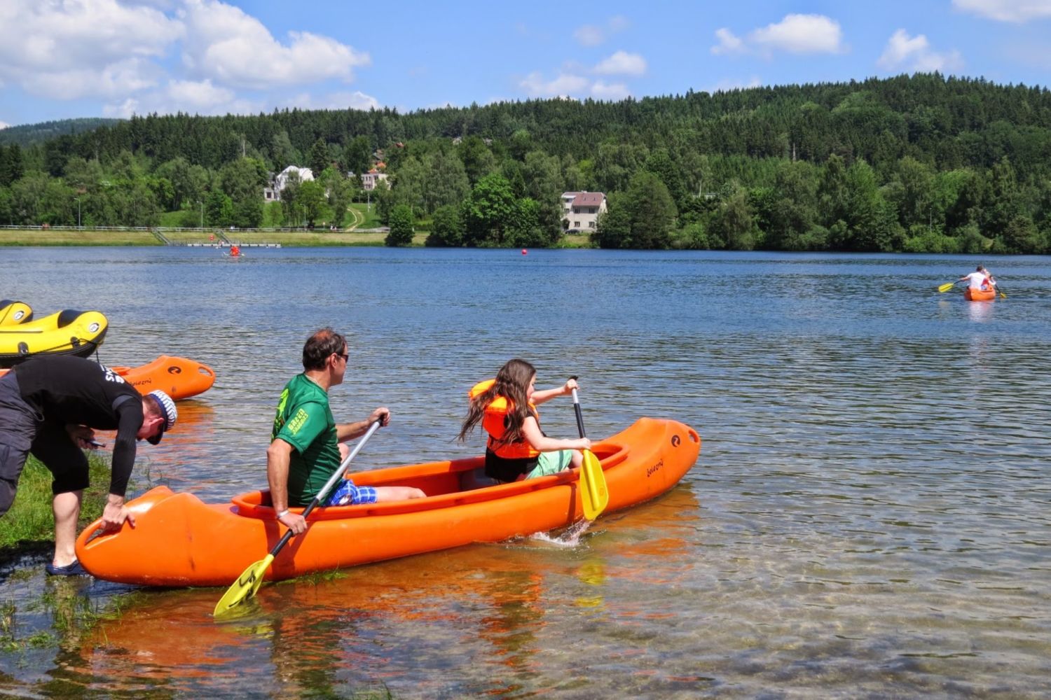 Kanurennsport oder Kanuslalom. Auch dies sind Sportarten, denen man auf dem Stausee von Jablonec frönen kann. Wer sein eigenes Kanu hat, kann die rasante Kanufahrt auch auf dem „Gablonzer Meer“ ausprobieren. Die Bootswerften am Ufer werden jedoch ausschließlich von Sportklubs (Rychlostní kanoistika RK Jablonec, www.tjdelfin.cz) in Anspruch genommen. Vom Frühling bis in den Herbst kann man ihnen beim Training auf dem Wasser begegnen, aber beispielsweise auch beim Neujahrs-Eskimo, bei dem sie Eskimorollen in den eisigen Fluten des „Gablonzer Meeres“ vorführen.