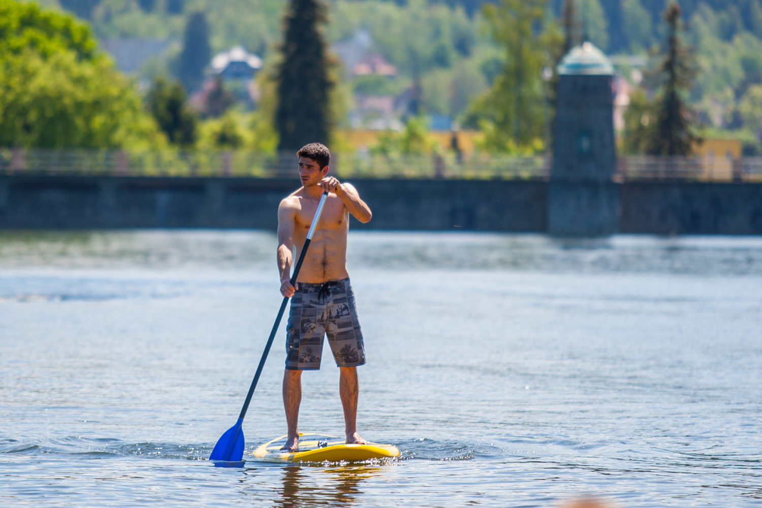 - stand-up paddleboard na přehradě