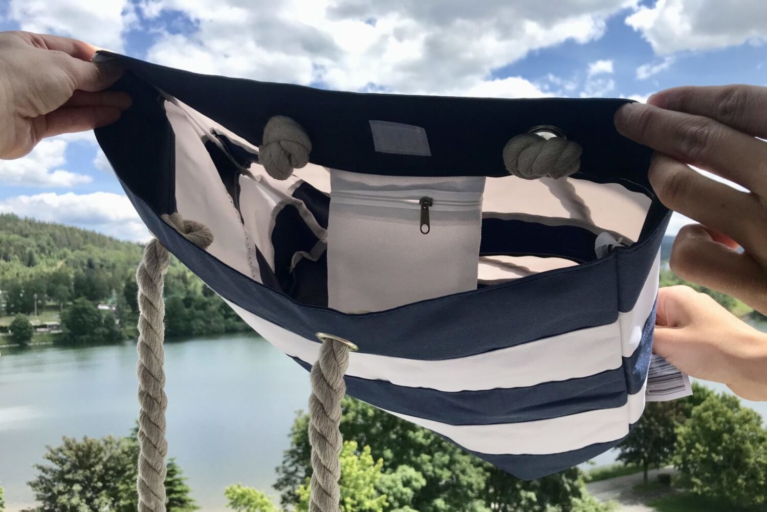Pevná taška, které nevadí ani vlhké plavky, bez problémů pojme ručník a další nezbytnosti na pláž. Nadčasové pruhy, ucha ve stylu námořních lan a značka Jablonecké moře spolu skvěle ladí a přímo lákají vyrazit k vodě! Potěší i praktická kapsička na zip uvnitř tašky, do které si můžete dát klíče nebo peníze na zmrzlinu. Rozměry tašky: 45 cm na šířku, 32 cm na výšku, hloubka 20 cm. Zakoupíte v jabloneckém turistickém infocentru.