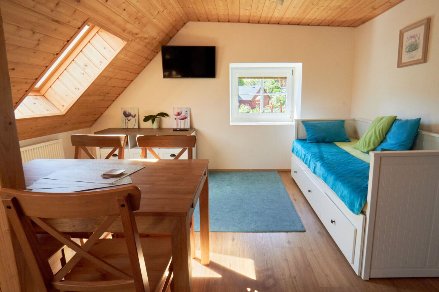 Das Apartment besteht aus 2 Zimmer, Bad und Kochnische.
