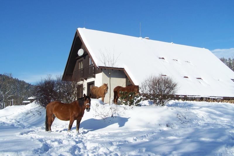 Ort und Umgebung: Die Farm befindet sich im Naturschutzgebiet Isergebirge (Jizerské hory), in einem kleinen Dorf auf der südlichen Seite des Bergkammes. Sie ist von wunderschöner
