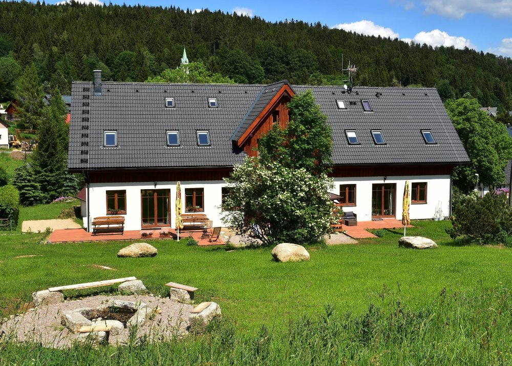 Sie befindet sich im Herzen des Isergebirges, im Ort Bedřichov, 50 m vom Hauptskigebiet Malinovka entfernt. Zur Winterzeit ist die Pension nicht nur ein Paradies für Pistenwedler, sondern auch für Loipenflitzer, welche die Skier nur 200 m von der Pension anschnallen können. Sommers wissen die Besucher der Pension im Zentrum von Bedřichov die Nähe zur Bushaltestelle, diversen Läden, der Post, Restaurants, einem Kinderspielplatz, dem Freibad, Tennisplätzen, einem Hochseilzentrum und Ausflugsorten und dennoch an einem stillen Ort auf einer Wiese, fern allen Autolärms zu schätzen.