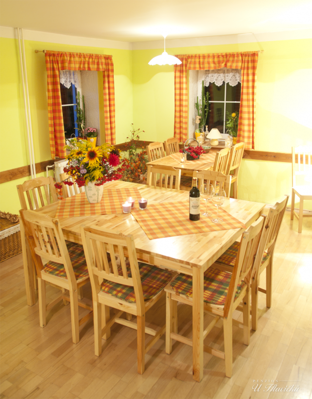 In der Pension U Hlavičků können die Gäste zwischen Zwei-, Drei- und Vierbettzimmern mit eigener Sanitäreinrichtung wählen. Im Rahmen der Halbpension wird das Frühstück in Form eines kalten Buffets gereicht und das Abendbrot nach alten böhmischen Rezepten zubereitet – Suppe und Hauptgericht.