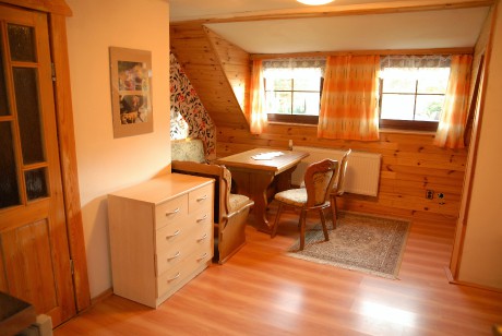 Unterkunft wird in zwei Appartements geboten, die sich in einem Familienhausanbau mit einem separaten Eingang befinden. Die Appartements verfügen über ausgestattete Küchen zum Selbstkochen. Genutzt werden kann der Gemeinschaftsraum, der als Speiseraum zum Reichen des Frühstücks dient. Nach Absprache kann auch ganztägige Verpflegung im benachbarten Hotel gewährleistet werden. Parkgelegenheit besteht kostenlos direkt am Objekt.