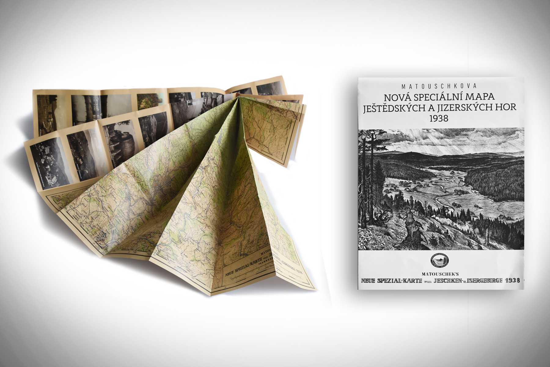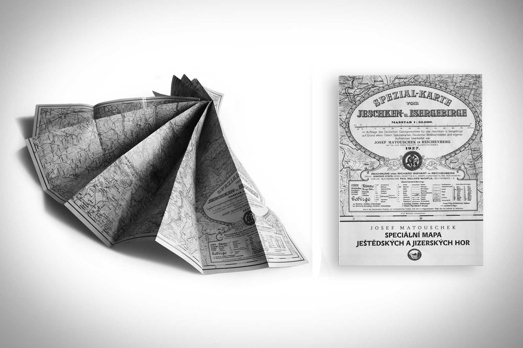 Matouschkova mapa Ještědských a Jizerských hor z roku 1927 a z roku 1938: