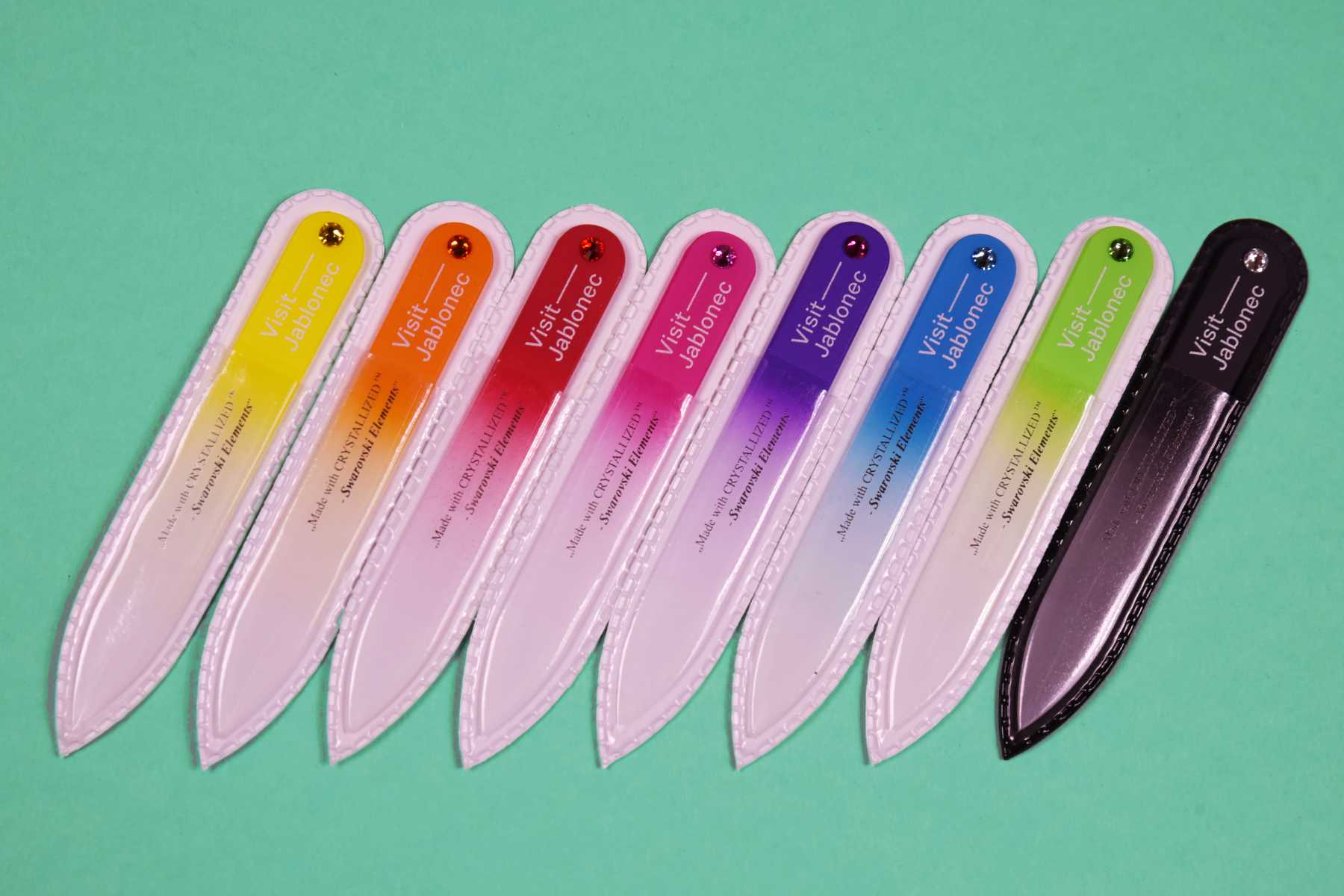 České skleněné pilníky na nehty si oblíbili ženy i muži. Proč právě skleněné? Protože jsou k nehtům šetrné a běžným používáním prakticky nezničitelné. Hodí se jak na umělé, tak přírodní nehty. Pilníky jsou vyrobeny z tvrzeného skla a mají zvýšenou odolnost v případě pádu. Zakoupíte je v mnoha barvách osazené zářivými kameny v jabloneckém turistickém infocentru.