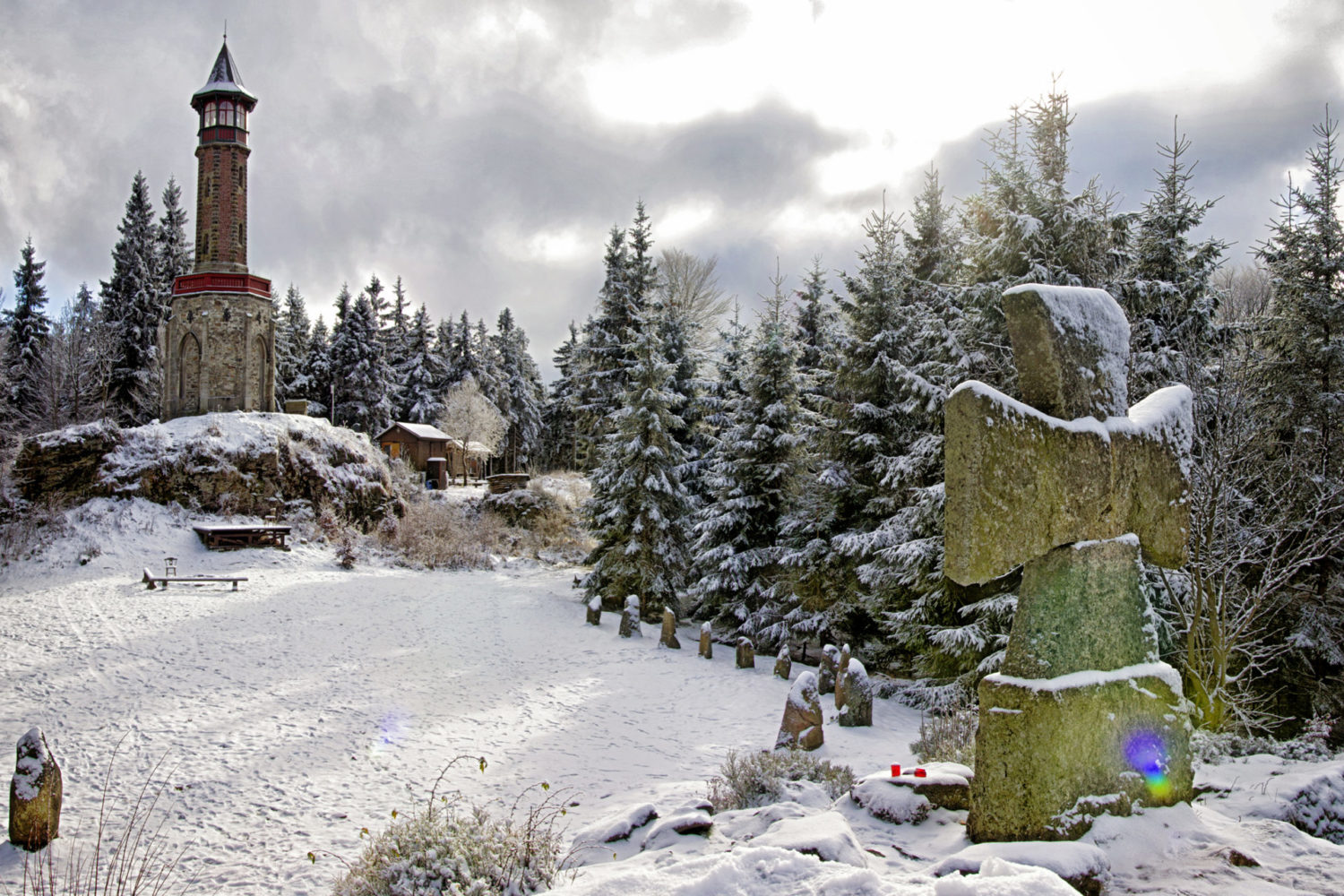 - rozhledna Štěpánka a kříž v zimě