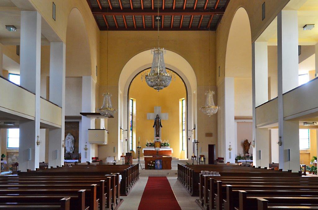 The large triple-nave building with a transverse nave and a rectangular spire on the southern side and a facing of clinker bricks, which was modern at the time of construction, was completed in 1932. The author of the design was a native of Jablonec and an architect of European significance, Josef Zasche, who designed two churches in his home town. The construction work was undertaken by the company of Max Daut and a wide range of other local companies. Only those supplies, for which there were no sufficiently good local suppliers, were assigned to any external companies. According to the architect, the interior remained incomplete due to a series of fateful changes and it was merely provisional. There is a bronze statue of Christ by the Viennese sculptor Arnold Hartig (a native of nearby Tanvald) above the main altar and is a marble altar statue of the Pieta by Franz Hub on a side altar (the altar is exceptional due to the fact that is also a memorial to those inhabitants of Jablonec who fell during the 1st World War).