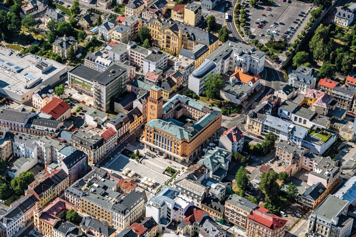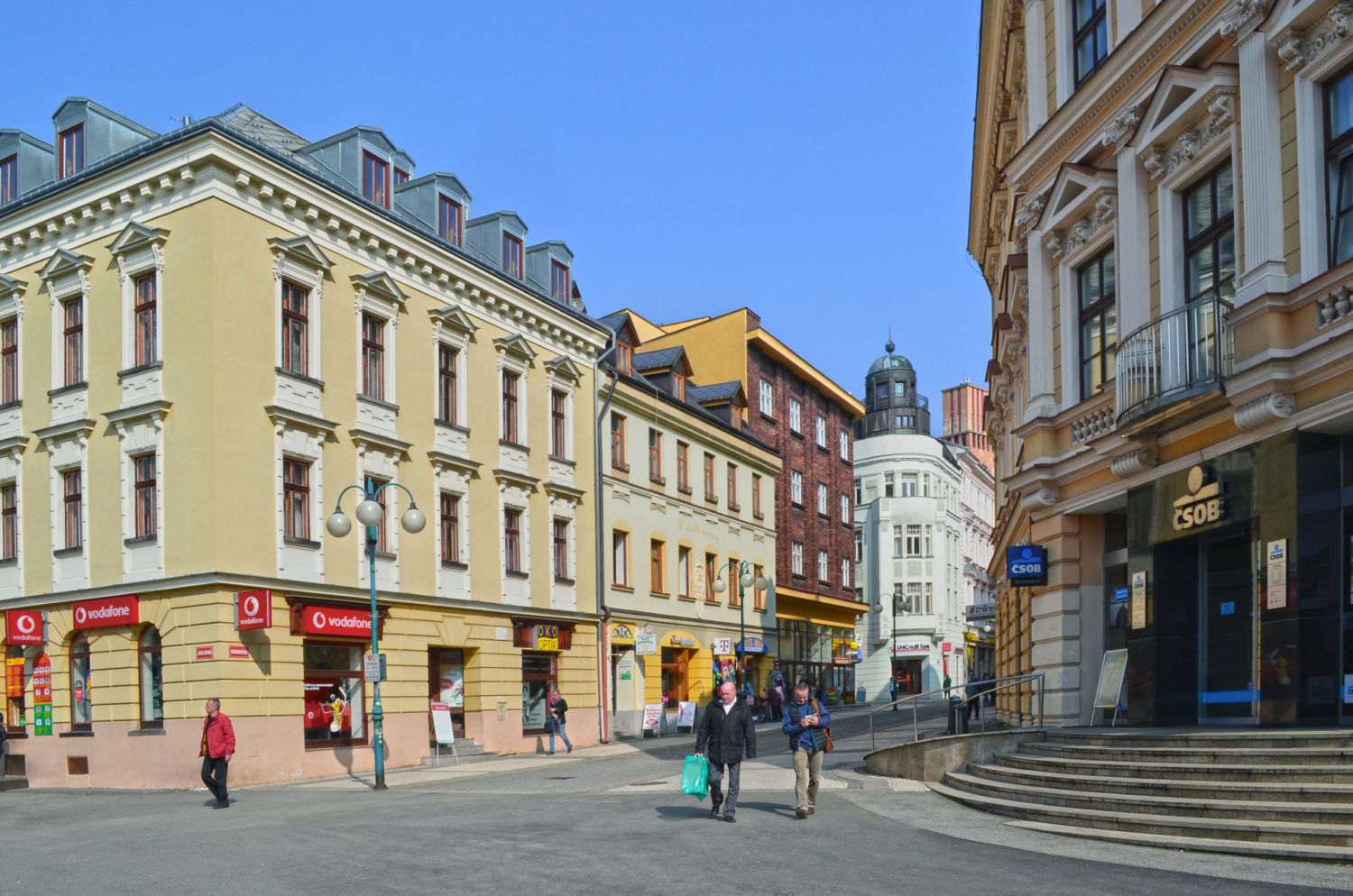 Now, turn left from the Peace Square and follow Podhorská Street to the picturesque Church of Dr Farský on the square of the same name. It was built in the neo-Gothic style. The building of the former discount bank, which was built in the neo-Classicist style in 1924, stands on the corner of Jiráskova and Podhorská Streets. This is in stark contrast to the modern facility of the Eurocentrum, which you can walk through so that you find yourself before the building of the Museum of Glass and Costume Jewellery, built in the art nouveau style in 1904 as an export house for the company Zimmer & Schmidt.