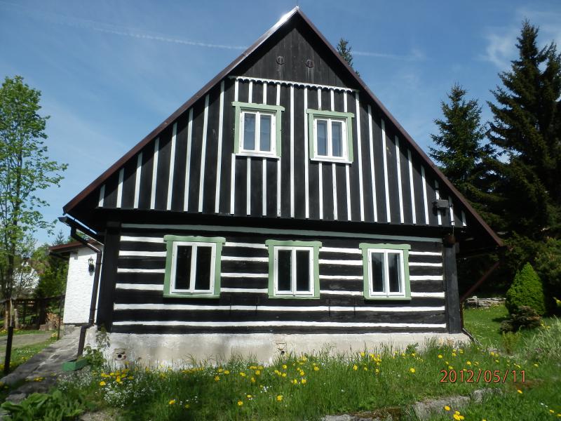 The capacity of the Chalupa Barbara is 7 people. It is a traditional semi-timbered cottage with an extension. There is a fully-equipped kitchen (a cooker, fridge, microwave oven, crockery, plates, glasses, and cutlery) and a rustic dining room on the ground floor.