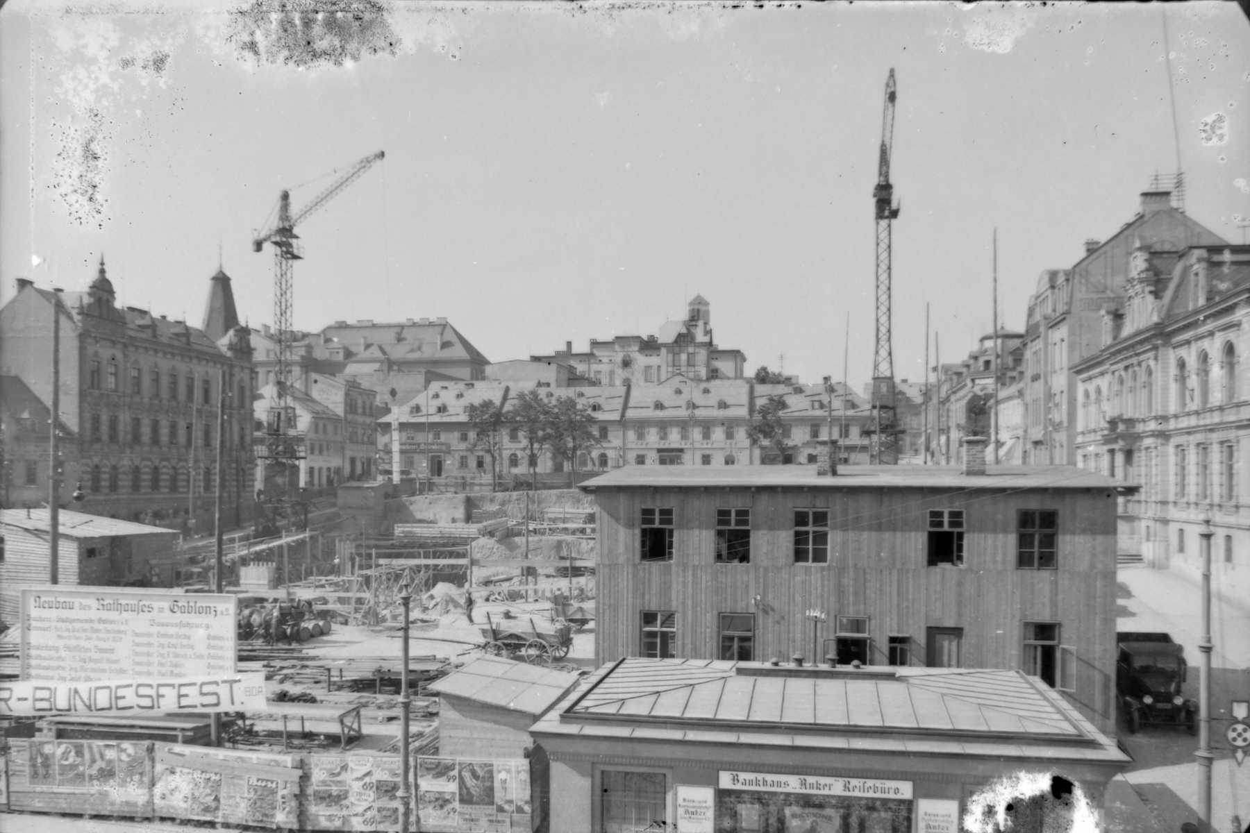 Vyvrcholení urbanistického vývoje města představovala meziválečná regulace centra, jež mu měla vtisknout velkoměstský výraz. Během ní byla postavena nová radnice (1933) a dotvořeno Horní náměstí (Gewerbeplatz) se Zascheho kostelem Nejsvětějšího srdce Ježíšova (1931) a Metznerovou kašnou (1930). Tím došlo k dovršení neopakovatelné a jedinečné urbanistické skladby tří kaskádovitých náměstí s nepřehlédnutelnými dominantami tří věží – staré i nové radnice a katolického kostela.