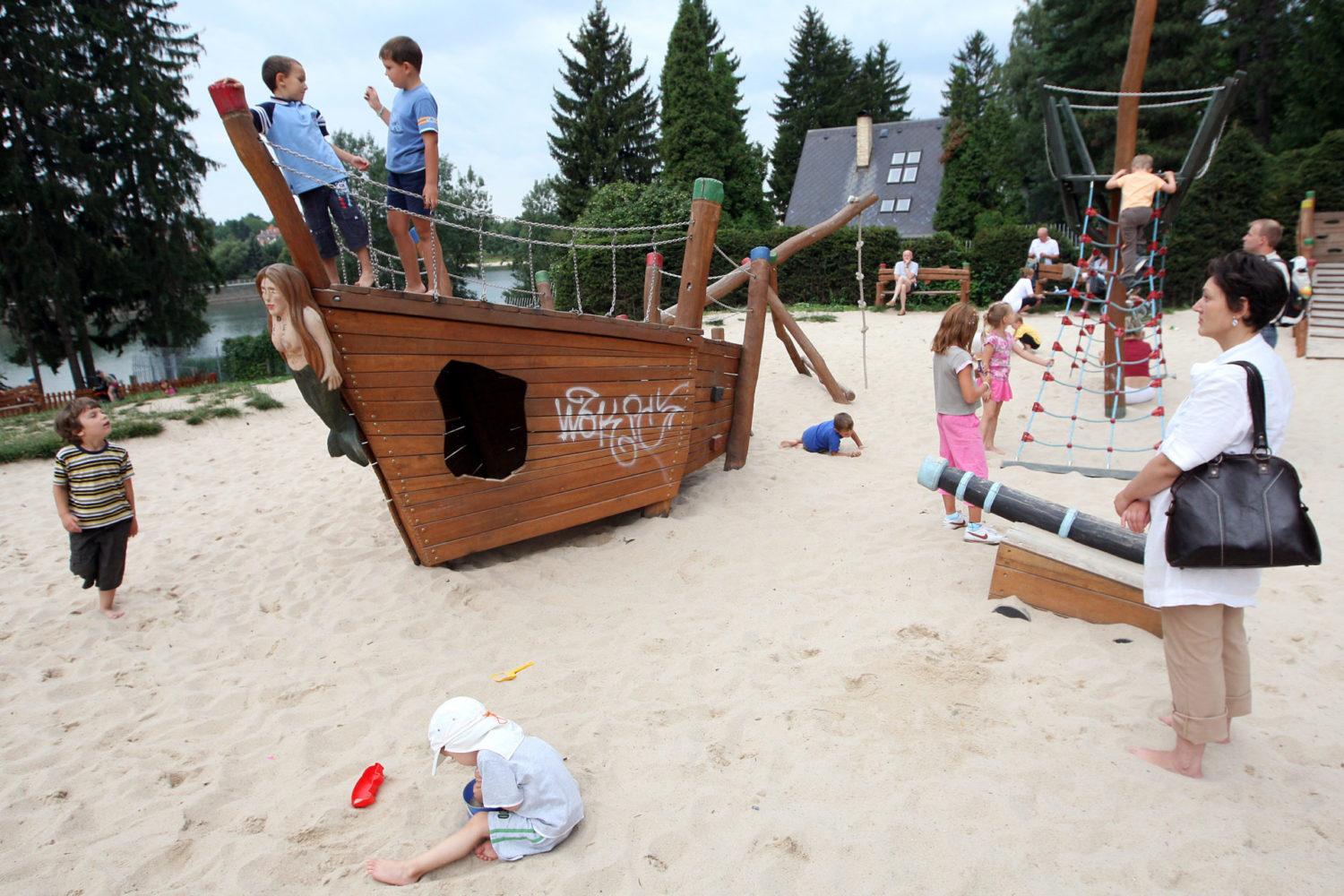 - Ve stínu stromů si můžete vyzkoušet morseovku, magickou spirálu a další dřevěné herní prvky, odpočívat u relaxačního jezírka, v piknikovém altánu nebo na vyhlídce.