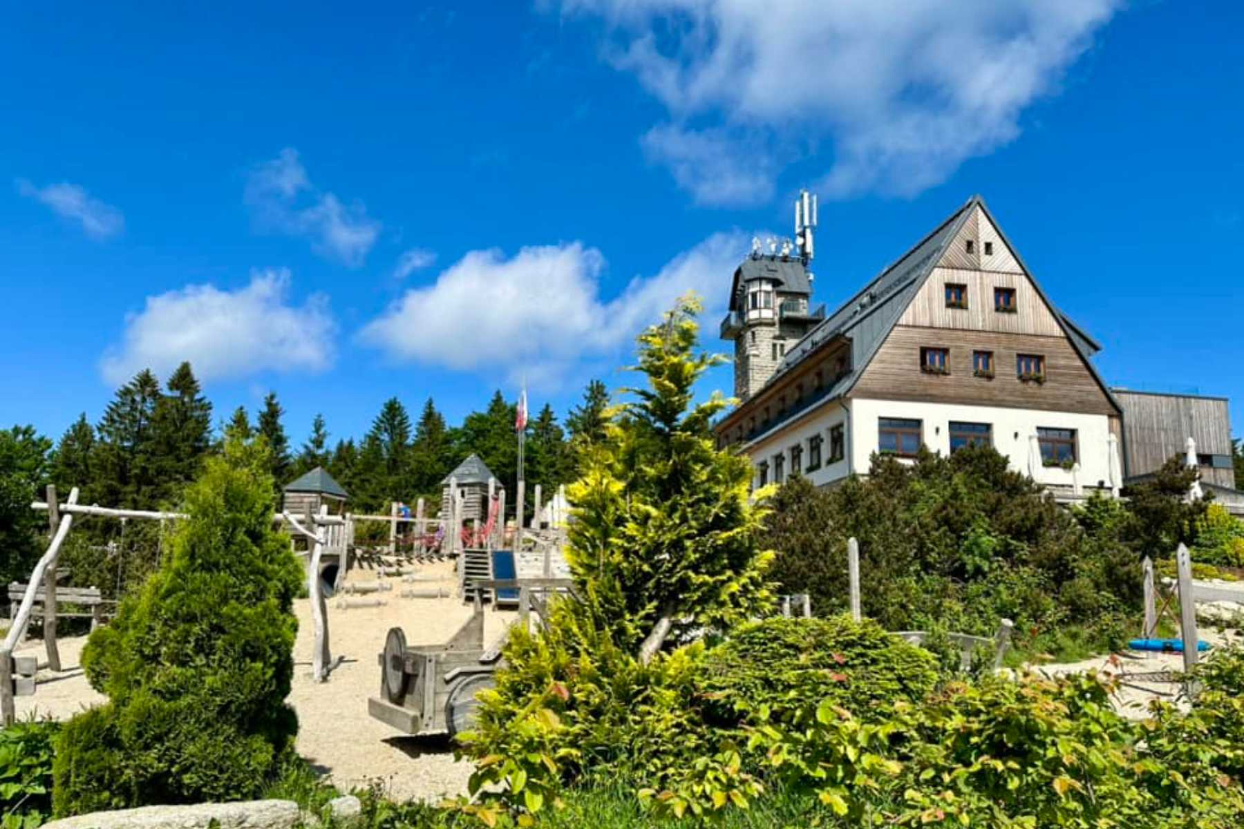 - Další rozhledny jsou rozesety po vršcích Jizerských hor. U dětí jsou oblíbené předevší ty, kde je možné si dát i něco dobrého k jídlu nebo si pohrát na hřišti – např. Černá Studnice, Bramberk, Královka, Maják Járy Cimrmana a další.