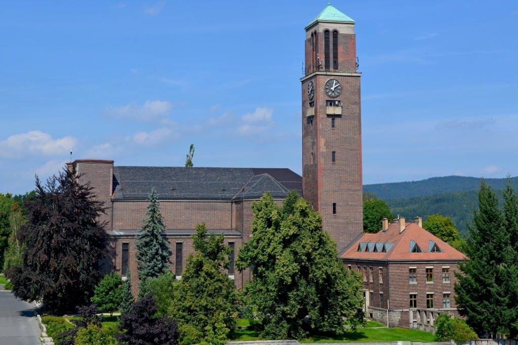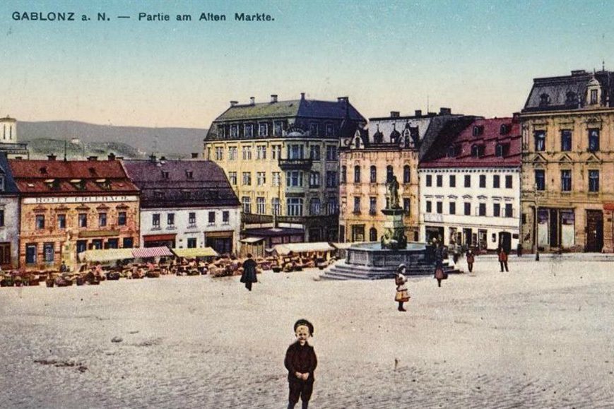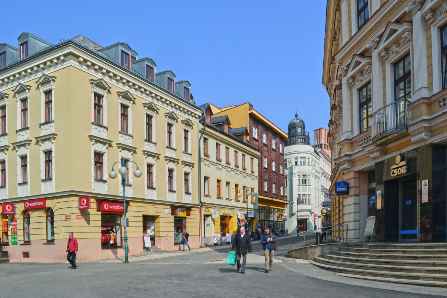 Než vás ohromí pohled na monumentální kostel Nejsvětějšího Srdce Ježíšova na Horním náměstí, kam míříme ulicí 28. října, všimněte si ještě rytíře v životní velikosti na nároží domu č. 91/2. Proč ho tehdy na svém domě nechal Alfred Kolb umístit, můžeme už jen hádat. Dům však střeží dodnes, na rozdíl od sochy německého rytíře Rüdigera z Písně o Nibelunzích, který stál dříve před kostelem a po válce byl odstraněn. Na náměstí doporučujeme chvilku spočinout a pokochat se výhledem na rozhlednu Černá studnice, která je vidět na obzoru.
