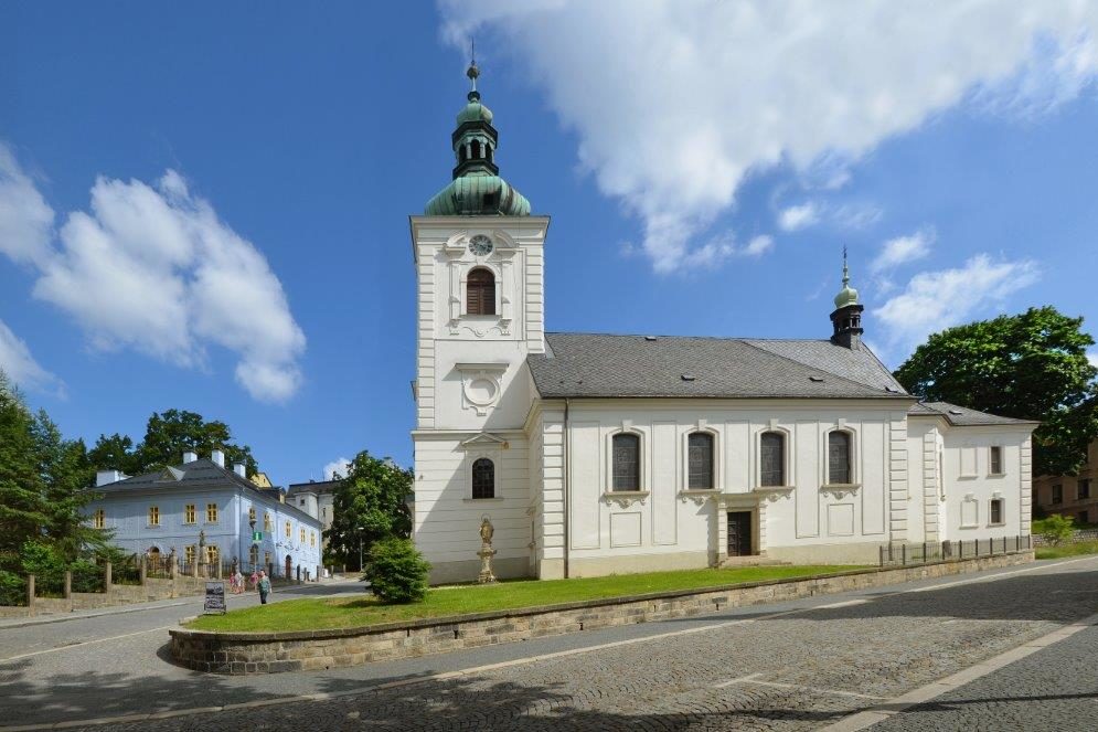 Trasa začíná u turistického infocentra, které sídlí v Domě národopisců Scheybalových. Na první pohled poznáte, že jde o bývalou faru. Patřila k protějšímu kostelu sv. Anny postaveném koncem 17. století a spolu s ním tvoří původní historické jádro města. Na místě dnešního parčíku býval kdysi hřbitov… Za zmínku stojí i Getsemanská zahrada u domu nebo Křížový kámen u kostela připomínající umrzlého muže, který je nejstarším pomníčkem Jizerských hor