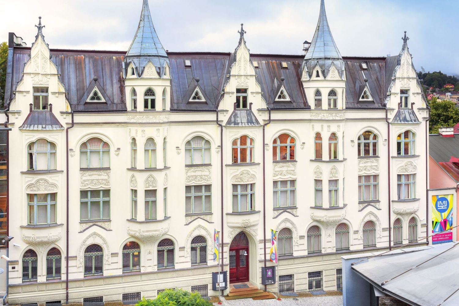 Poté se kolem dvou budov středních škol opět vrátíme k radnici. Za pozornost určitě stojí starší z nich – Střední uměleckoprůmyslová škola založená r. 1880, která je rodinným stříbrem Jablonce. Vychovává odborníky specializující se na bižuterii, kovový šperk, plastickou rytinu, grafický design a také budoucí medailéry.