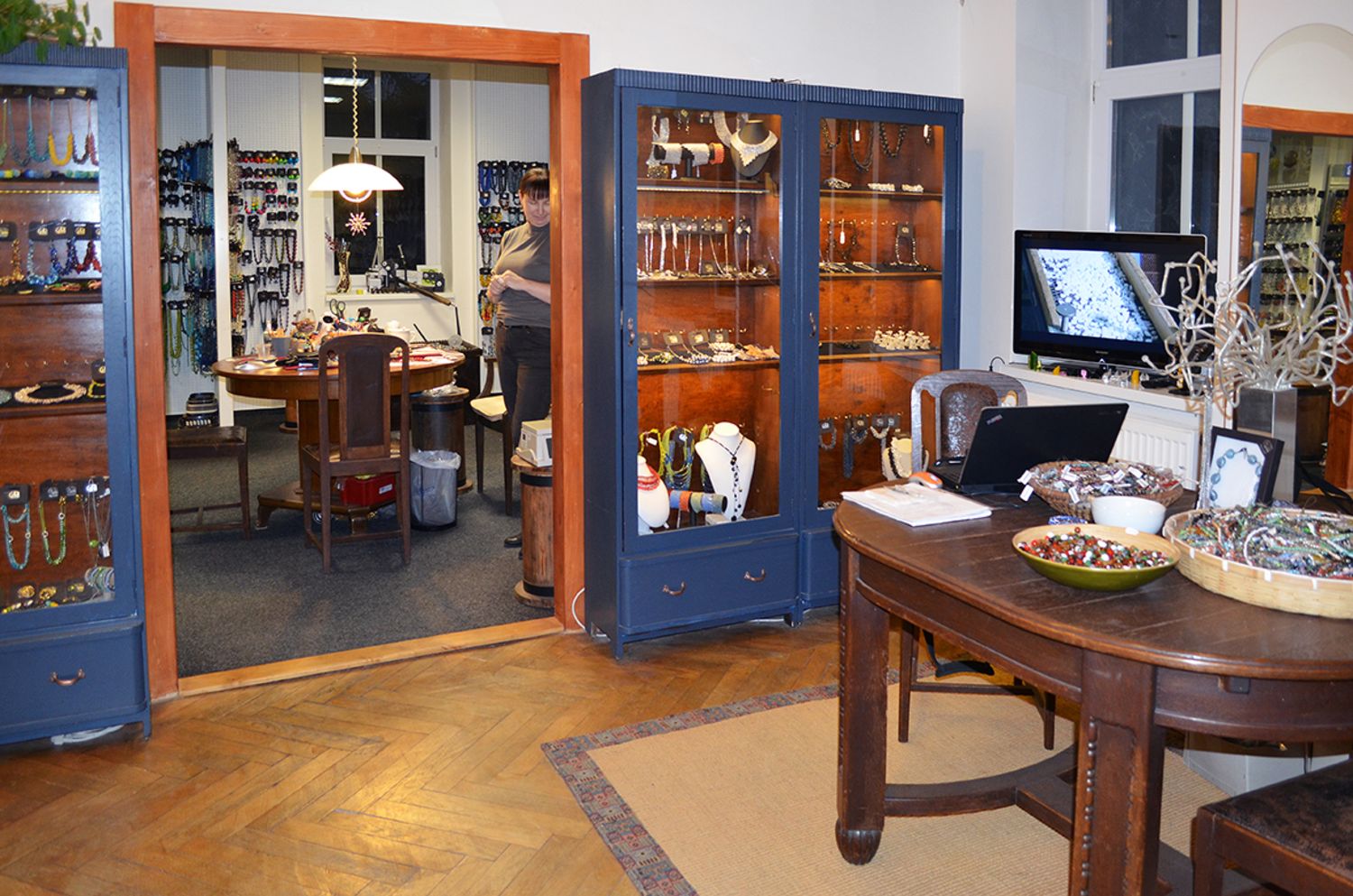 Pokaz całego procesu produkcji szklanych pereł, prezentacja trudności produkcji, kultywacja tradycji produkcji wyrobów szkalnych w regionie za pośrednictwem wyświetlanego filmu. Dla większych grup z prelekcją, możliwość zamówienia wykładu nt. historii produkcji pereł.