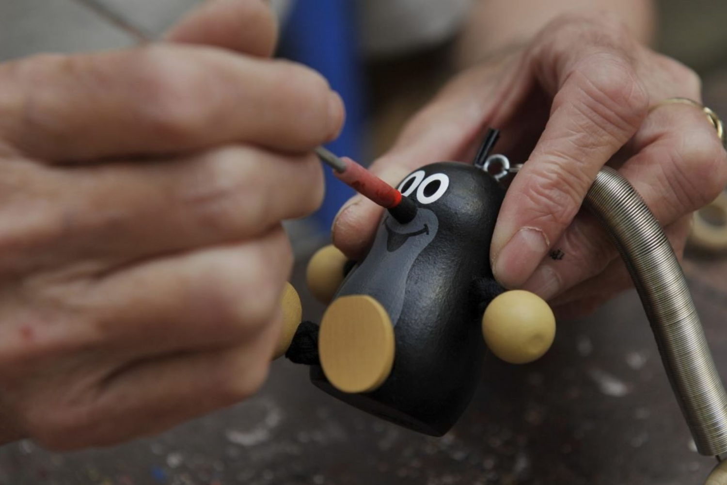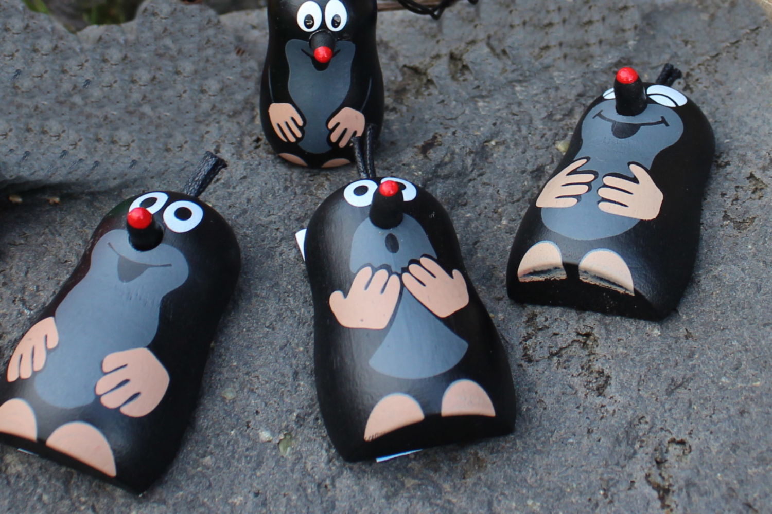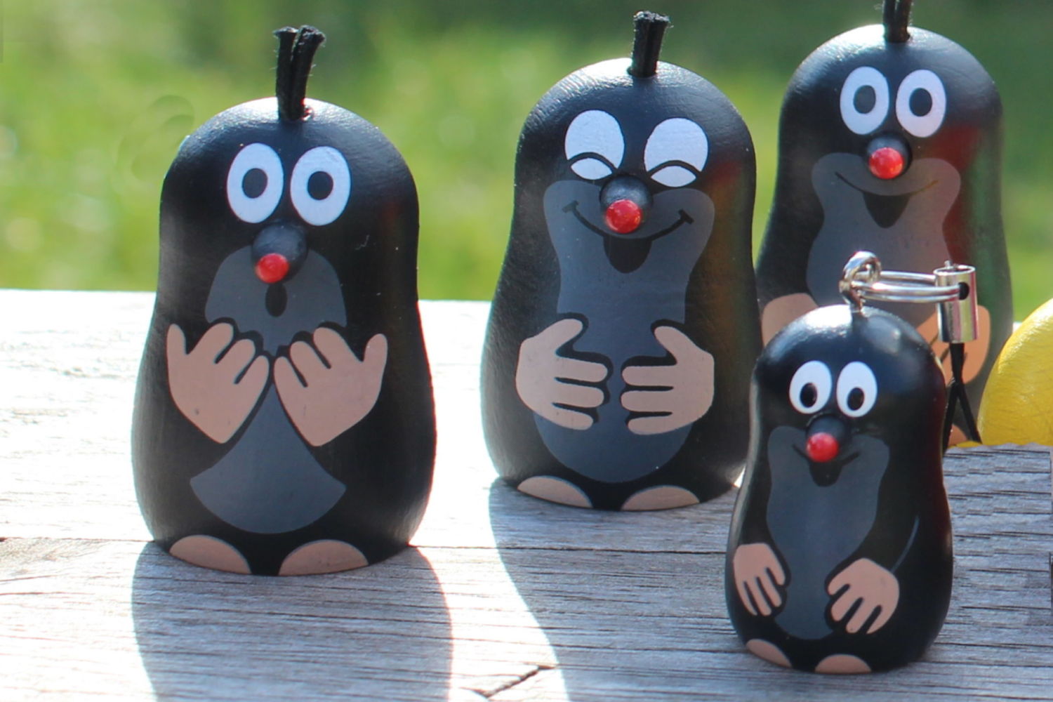 Krteček má také své nálady… buď se usmívá, je udivený nebo se řehtá. Jako magnetku v dřevěném provedení z dílen firmy Detoa si jej můžete zakoupit v jabloneckém turistickém infocentru.