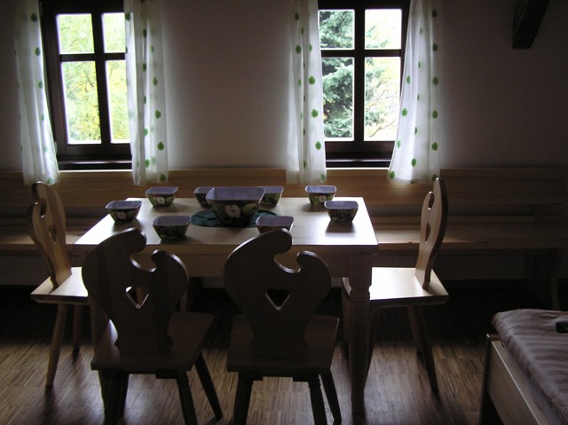 – Wspólna kuchnia: lodówka z zamrażarką, kuchenka mikrofalowa, płyta ceramiczna z piekarnikiem, czajnik