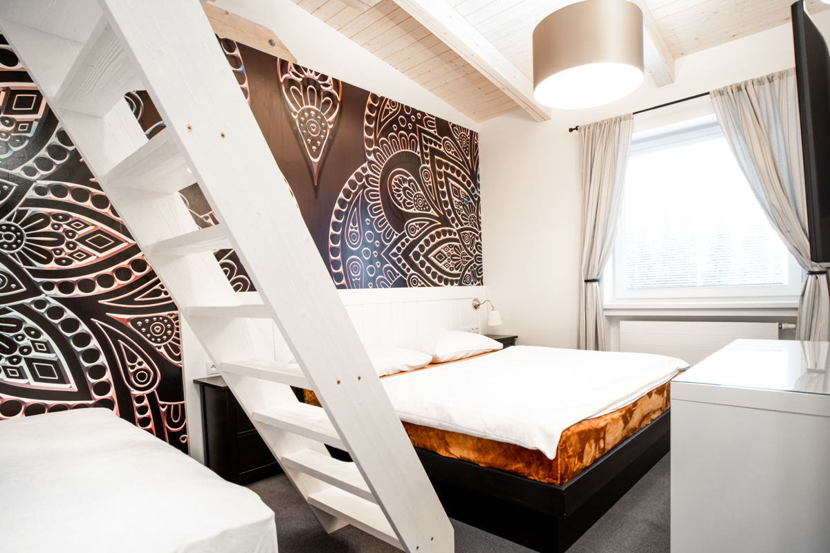 Rodzaje pokoi: dwuosobowe, trzyosobowe, czteroosobowe, apartament