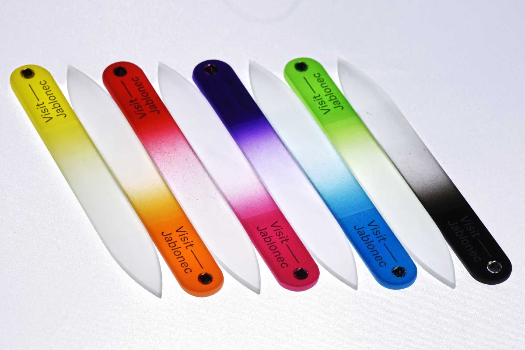 České skleněné pilníky na nehty si oblíbili ženy i muži. Proč právě skleněné? Protože jsou k nehtům šetrné a běžným používáním prakticky nezničitelné. Hodí se jak na umělé, tak přírodní nehty. Pilníky jsou vyrobeny z tvrzeného skla a mají zvýšenou odolnost v případě pádu. Zakoupíte je v mnoha barvách osazené zářivými kameny Swarovski a logem Visit Jablonec v jabloneckém turistickém infocentru.