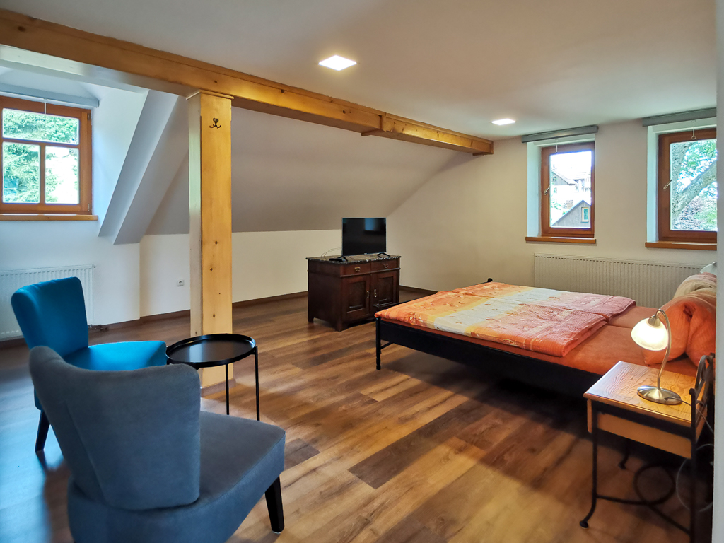 Ve čtyřech samostatných apartmánech najdou zázemí hosté všech věkových skupin, včetně rodin s dětmi. K využití je velká zahrada se zastřešeným posezením. Pro všechny hosty je k dispozici bezplatné parkování přímo u ubytovacího zařízení.