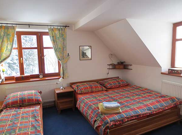 Druhy pokojů: 2 lůžkové, 4 lůžkové, apartmá