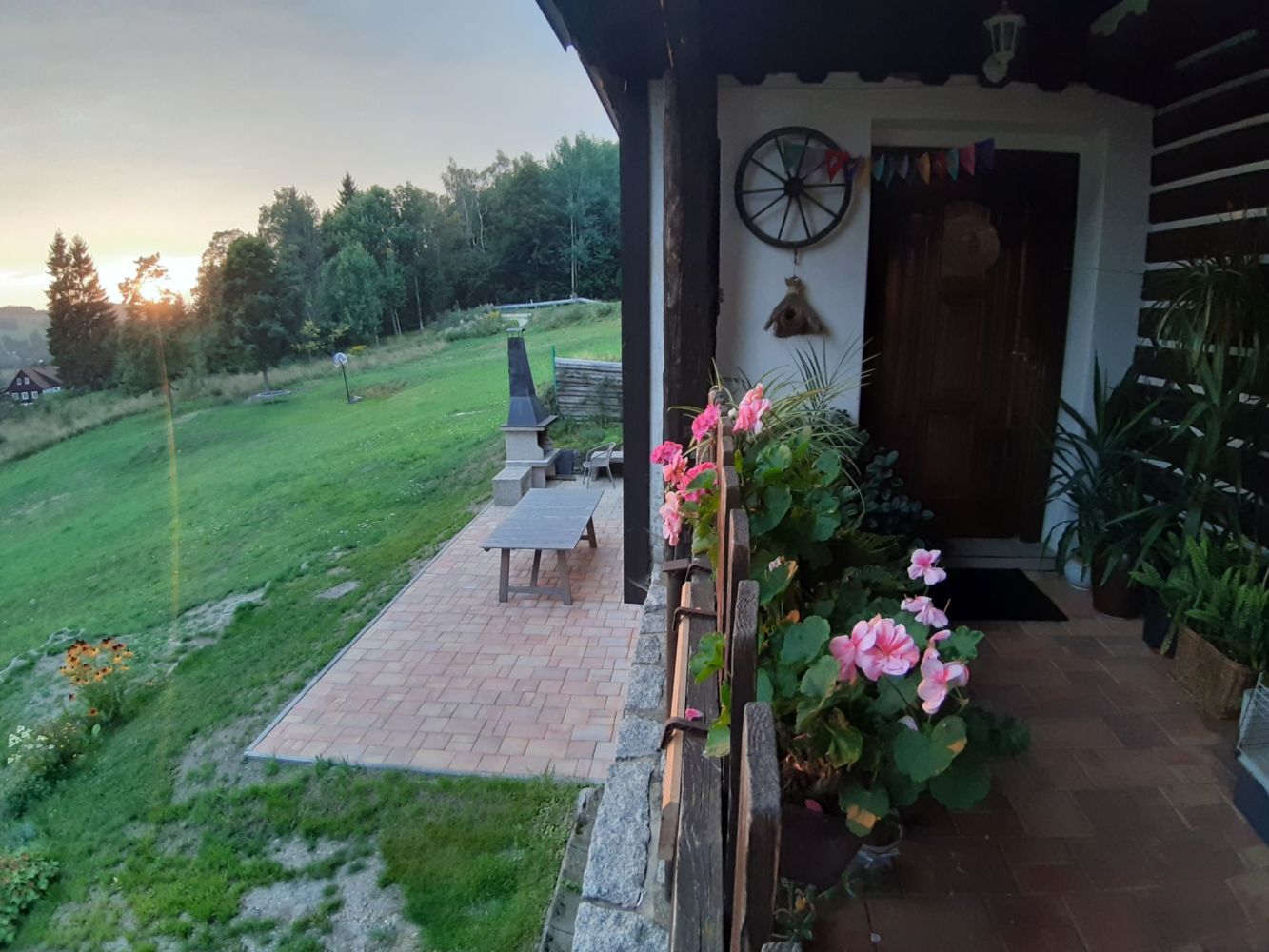 pokoj s vanou / sprchou, pokoj s WC, TV ve společenské místnosti, gril, ohniště, zahrada, terasa, venkovní bazén, sauna, dětské hřiště / dětský koutek, půjčovna sportovních potřeb, parkoviště