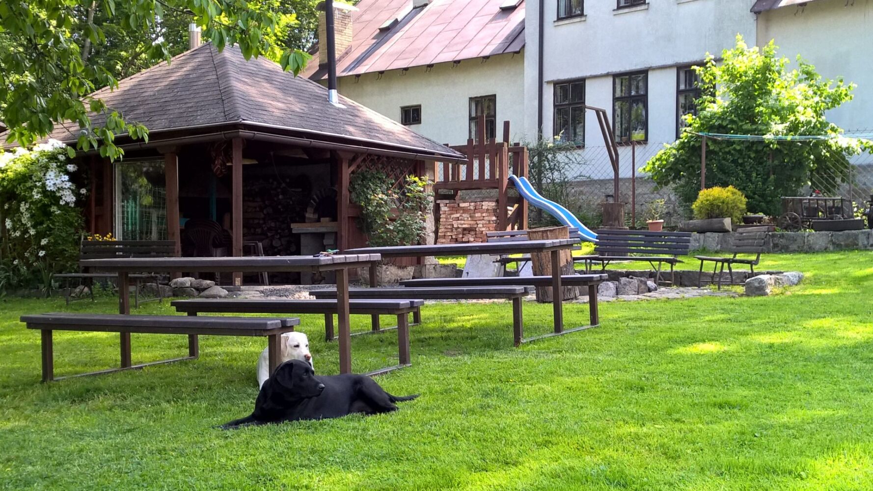 pokoj s vanou / sprchou, pokoj s WC, společná koupelna, TV ve společenské místnosti, WiFi, možnost vaření, gril, ohniště, zahrada, terasa, dětské hřiště / dětský koutek, hřiště, půjčovna sportovních potřeb, parkoviště, zvířata akceptována
