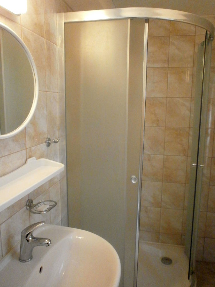 Pokoj č. 3 – 5 lůžek (2 x 2 + 1) skříň, stolek + židle, police, věšák, noční stolky, lampičky, WC, sprchový kout.