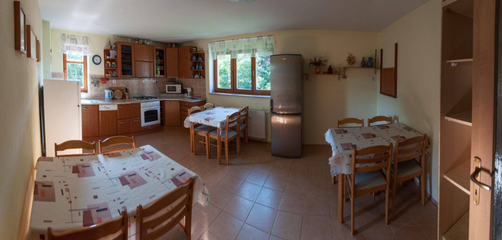 Vybavená kuchyně pro vlastní vaření, zimní zahrada, společenská místnost s krbem, malým dětským koutkem, stolní fotbal, stolní tenis.