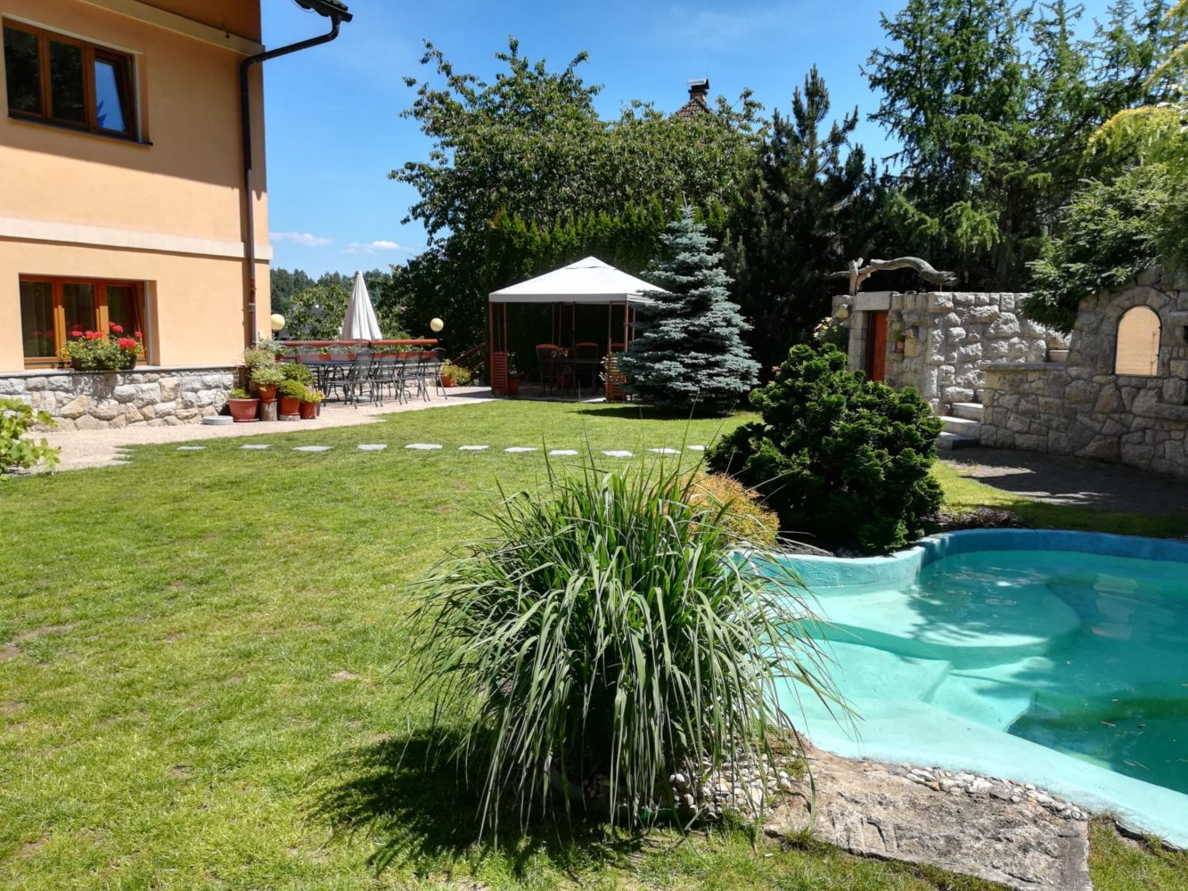 K dispozici Vám je zahrada s krbem a ohništěm, altánkem, dětské pískoviště s hračky a klouzačkou.