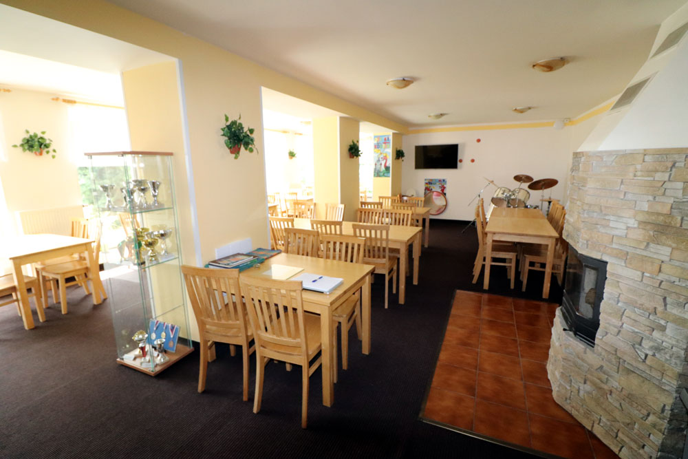 Penzion nabízí jídelnu, která slouží jako společenská místnost, dětský koutek, malý bar s občerstvením.